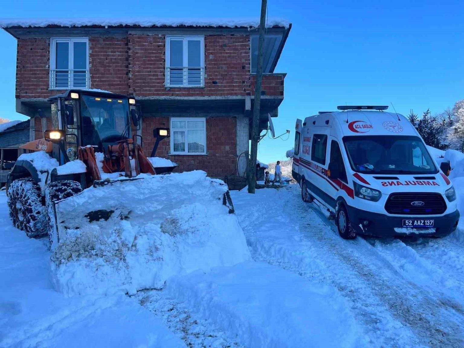 Ordu’nun Ulubey ilçesinde, etkili olan kar yağışının ardından yolların açık tutulması için yoğun çalışma yürütüldü.