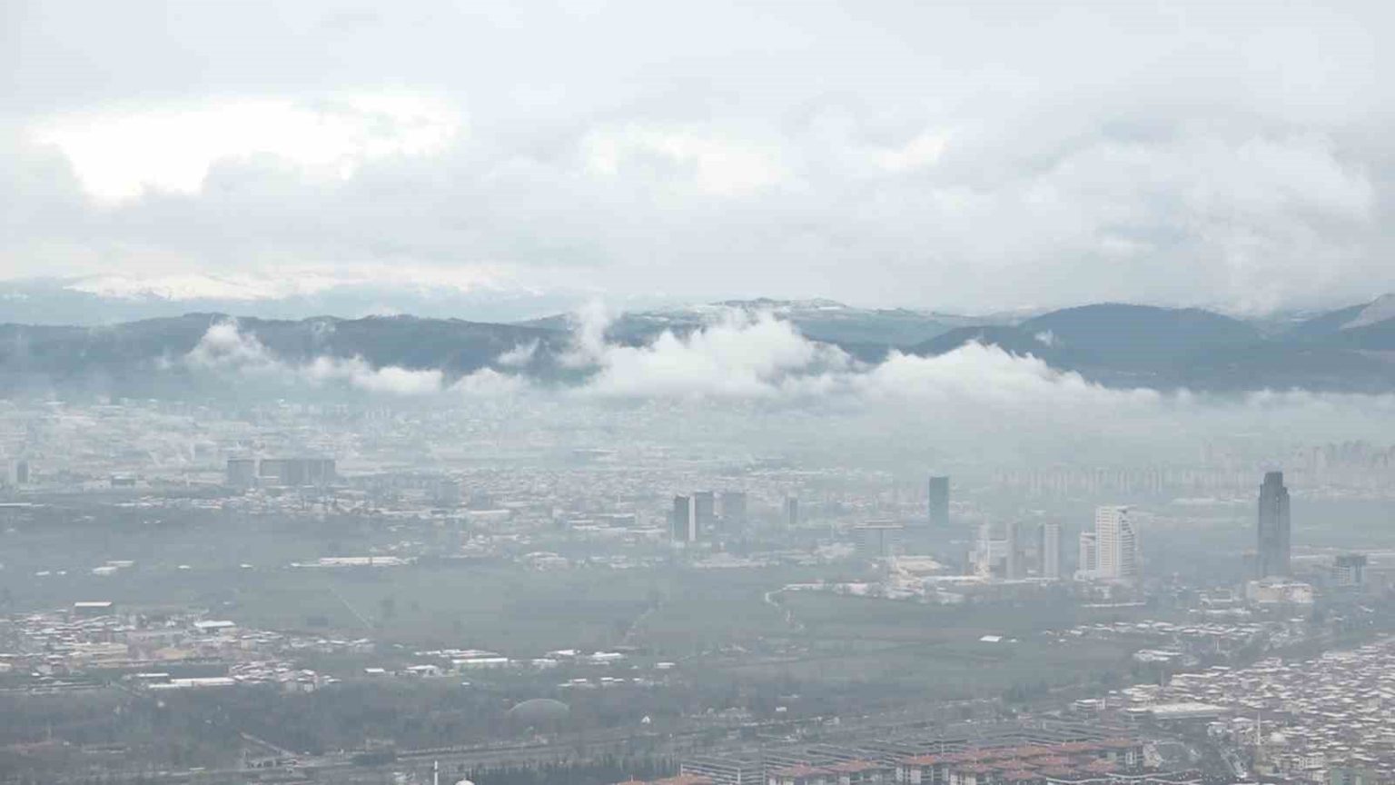 Havadan görüntülenen Bursa’nın bir kısmının karlı bir kısmının normal olması dikkat çekti.