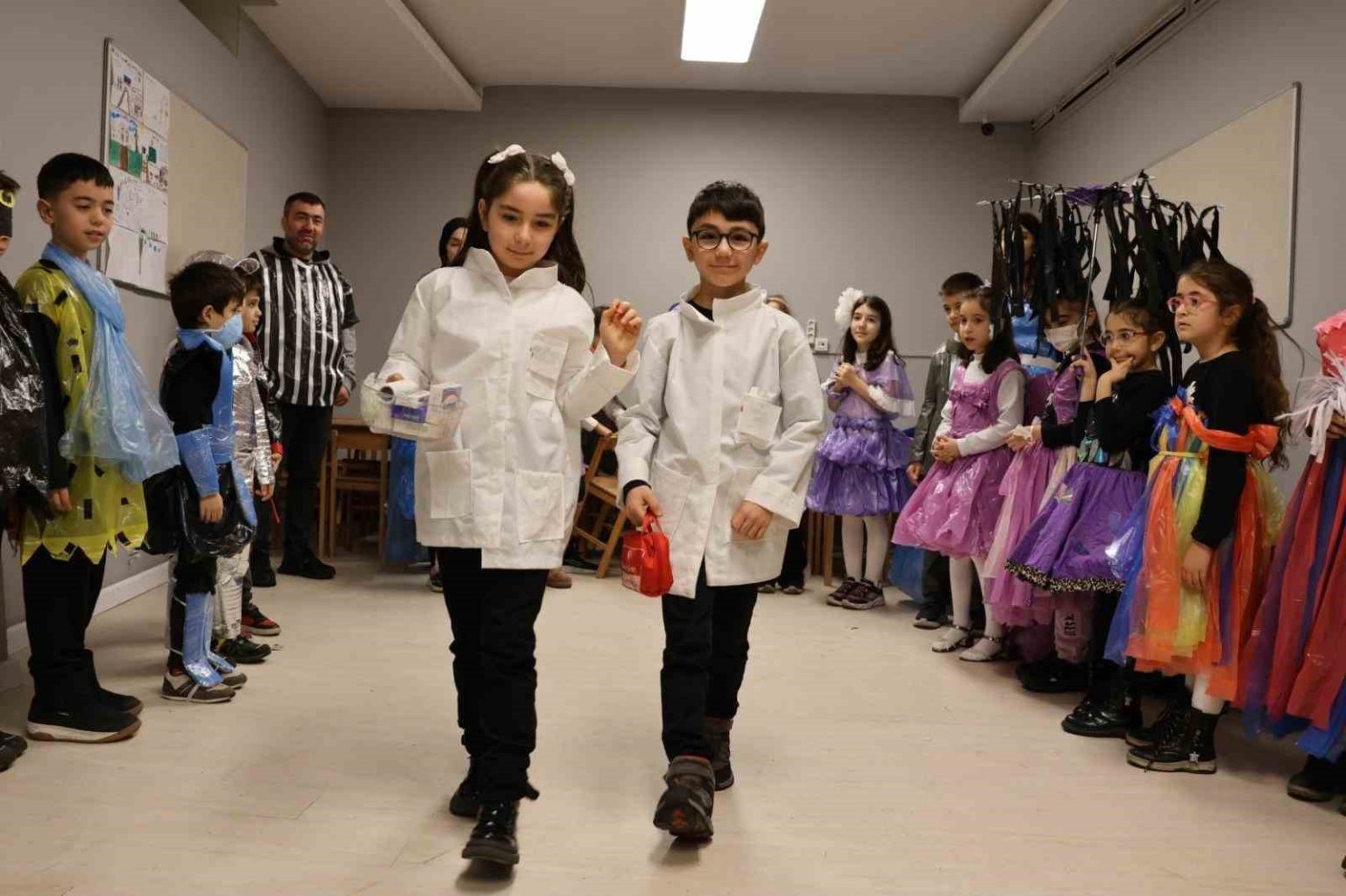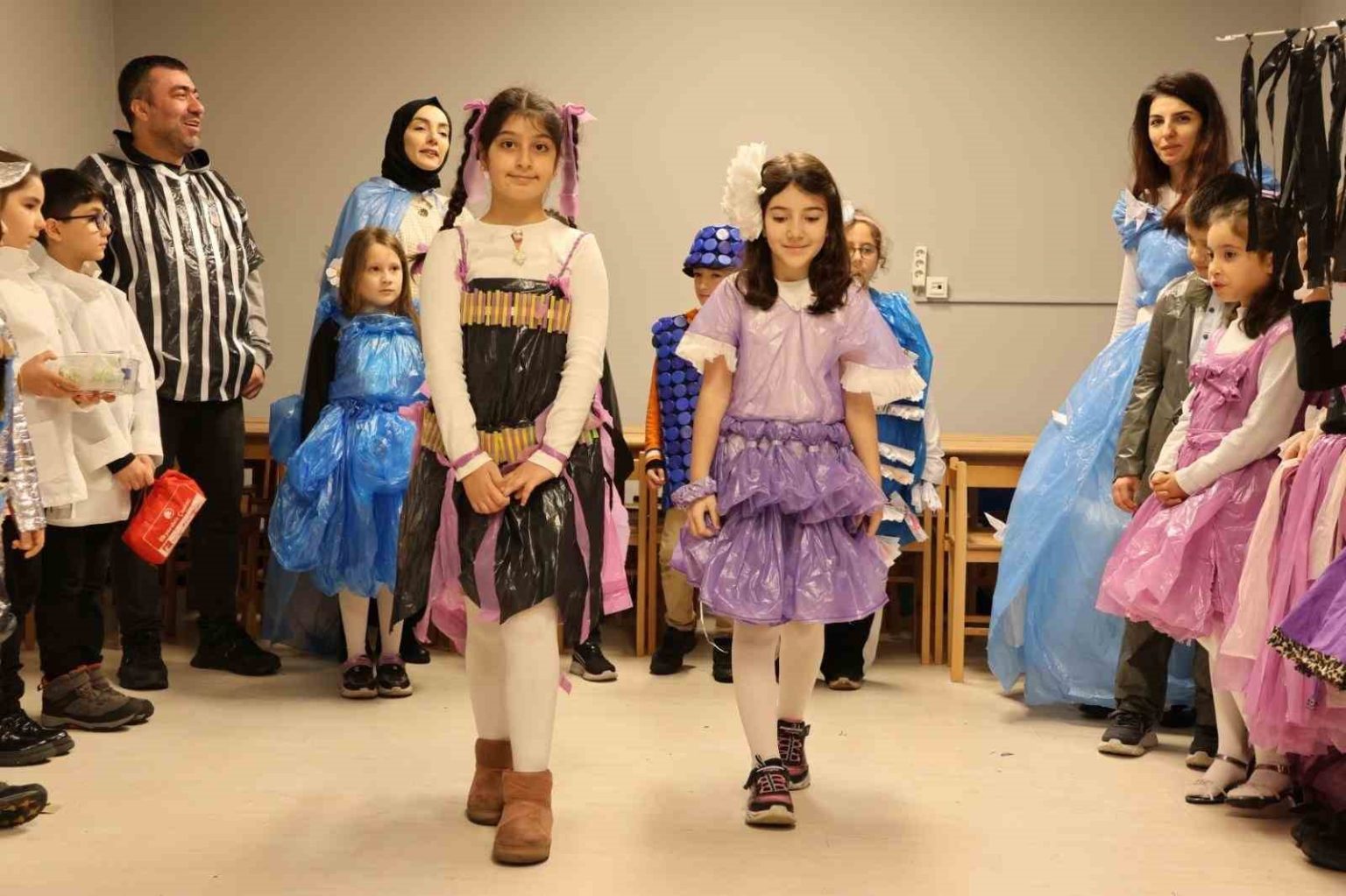 Ümraniye Belediyesi İklim Değişikliği ve Sıfır Atık Müdürlüğü tarafından geri dönüşümün gücünü gözler önüne seren özel bir etkinliğe imza atıldı Öğrencilerin biriktirdiği atık malzemelerle tasarladıkları kıyafetler, renkli bir defileyle sahneye çıktı.
