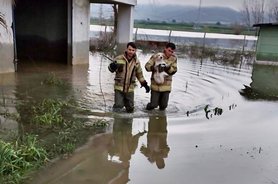 Torbalı ilçesine bağlı Yeniköy Mahallesi’nde, inşaat hâlindeki üç katlı bir binaya sığınan bir köpek, çevresini saran su nedeniyle mahsur kaldı. Su seviyesinin hızla yükselmesiyle kaçacak yeri kalmayan hayvan, binanın üçüncü katına sığındı. İhbar üzerine İzmir Büyükşehir Belediyesi İtfaiye Dairesi Başkanlığı ekipleri kısa sürede bölgeye ulaştı. Zamanla yarışan ekipler, yüksek su seviyesine rağmen dikkatli ve kontrollü bir çalışma yürüttü. Korku ve yalnızlık içinde bekleyen köpeğe kısa sürede ulaşıldı. İlk anda tedirginlik yaşayan hayvan, itfaiyecilerin güven verici yaklaşımı sayesinde sakinleşti. Kucaklanarak güvenli alana çıkarılan köpek yeniden özgürlüğüne kavuştu.