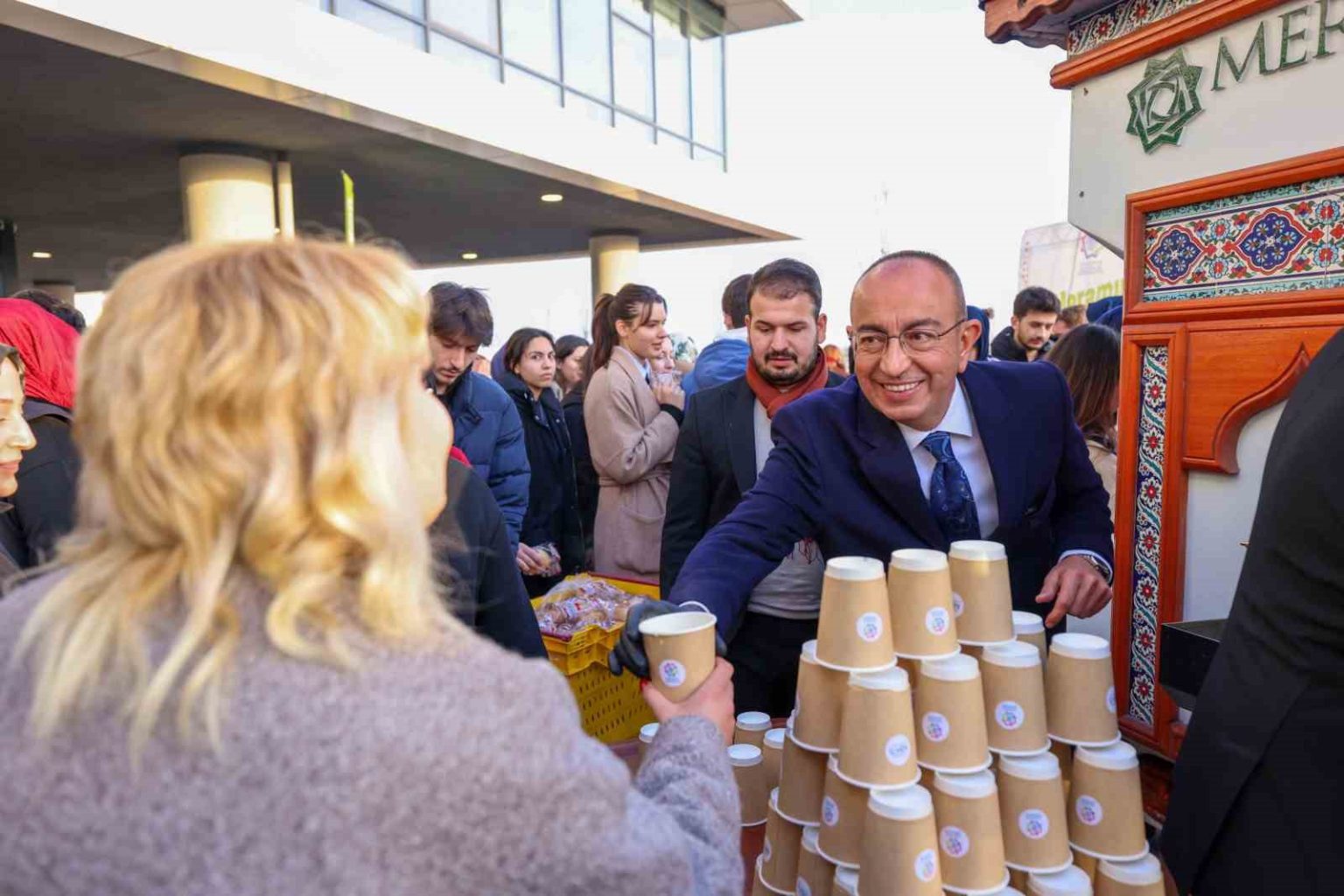 Konya’nın merkez Meram ilçe Belediyesi ve Meram Gençlik Meclisi, final sınavı heyecanı yaşayan Necmettin Erbakan Üniversitesi öğrencileri için anlamlı bir etkinlik gerçekleştirdi. Etkinlik çerçevesinde Meram Belediye Başkanı Mustafa Kavuş ve Necmettin Erbakan Üniversitesi Rektörü Prof. Dr. Cem Zorlu sınav maratonunun en yoğun günlerinde öğrencilere çorba ikramında bulundu.