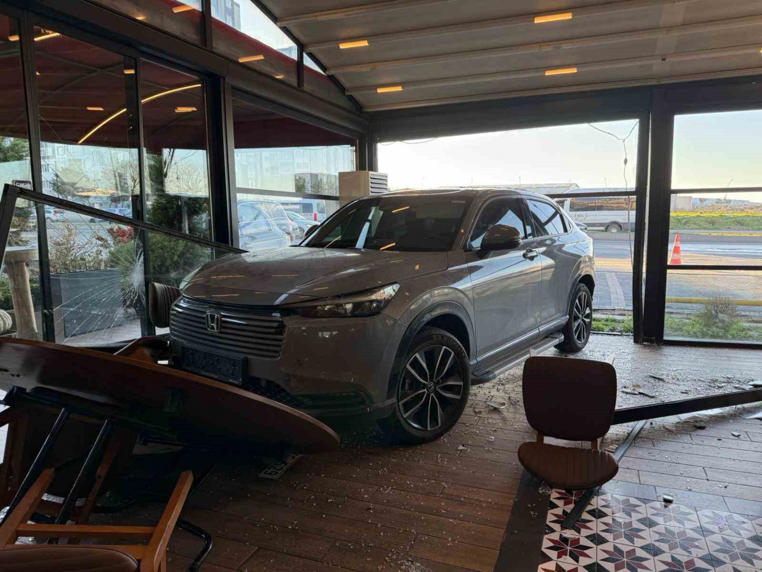 İşletmeci Eyüp Civelek, “Sakin bir zamanda, içeride müşteri olmayan bir zamanda otururken. Bir baktık içeriye araba girdi. Sanıyoruz ki fren yerine gaza bastı. Çünkü yavaş bir şekilde geliyordu sonradan kameralardan izlediğimiz taktirde. Bir anda içeriye araç girdiğini fark ettik. Zaten büyük bir gürültü oldu. Sürekli gelen ünlü bir sanatçı, sürekli gelen müşterimiz. İşte biz de hemen müdahale ettik zaten. Çok şükür sağlık durumu iyi, bir problemi yok. Biraz şok halindeydi. Hemen dışarı çıkardık, su verdik. Baktık etrafta zayiat da yok, müşteri de yoktu o anda. Sakindi boştu. Çok şükür hiçbir şey olmadan böyle bir ufak bir kaza atlattık. Sağlık durumu iyi. Müşterimizin, abimizin sağlık durumu iyi. Yine de genel bir kontrol amaçlı hastaneye götürdüler. Polis arkadaşlarımız da burada. Tutanaklar tutuldu. Böyle bir kötü bir gün oldu bizim için” dedi.