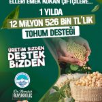 Kayseri Büyükşehir Belediyesi Kırsal Hizmetler Daire Başkanlığı tarafından 2025 yılında Kayserili üreticilere verilen toplamda 262 ton nohut, yeşil mercimek ve buğday tohumu ile 3 bin fidan desteğinin mali karşılığı 12 milyon 526 bin TL oldu.