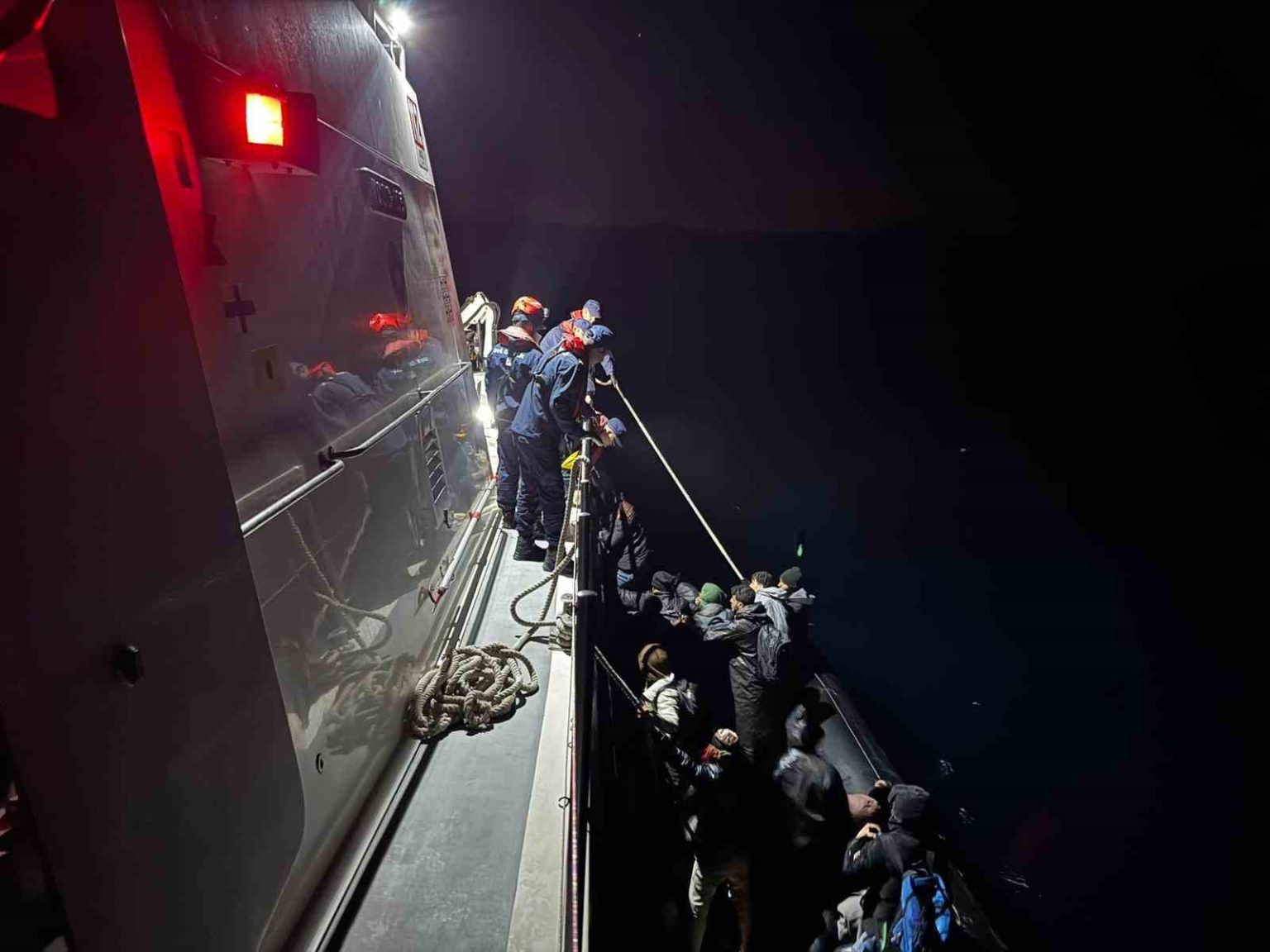 İzmir’de Urla açıklarında, Sahil Güvenlik ekiplerince durdurulan hareketli lastik botta 21 düzensiz göçmen yakalandı.