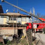 Uşak’ın Banaz ilçesinde 3 katlı evin çatısında meydana gelen yangın söndürüldü.