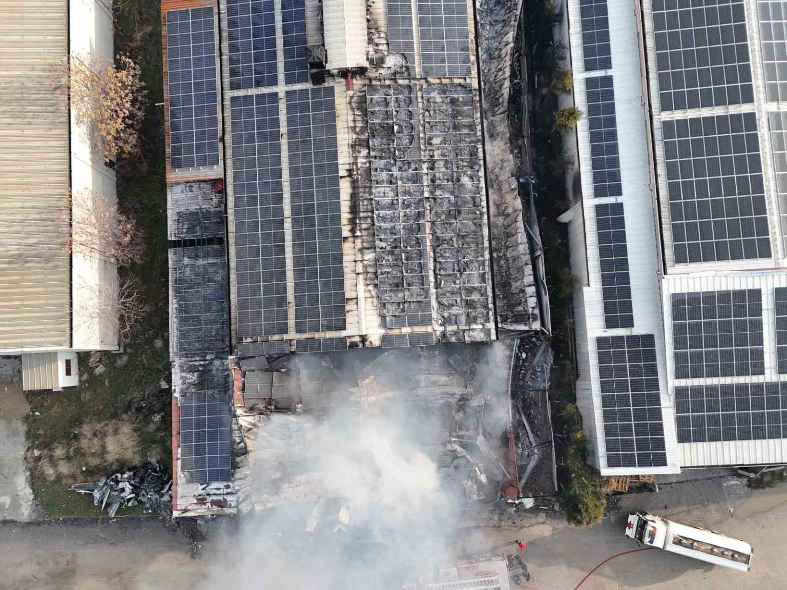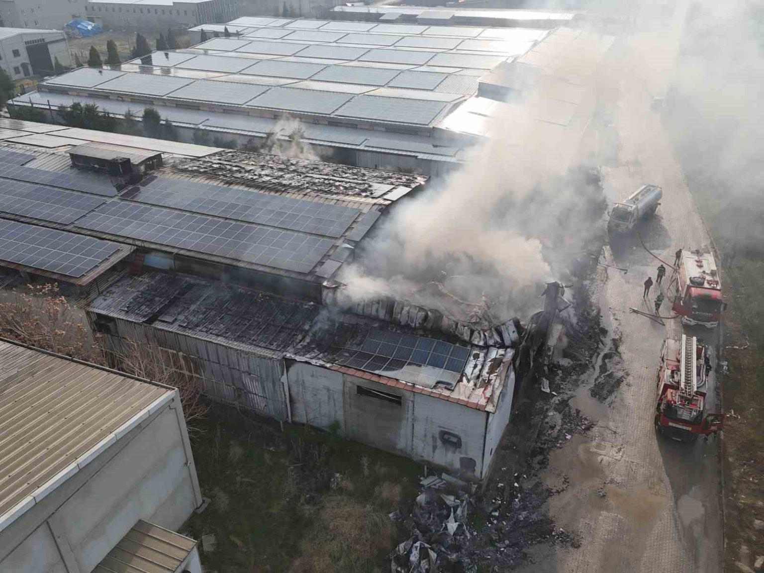 Yangın nedeniyle fabrikanın bir bölümünde ve çatı katında hasar oluşurken, bazı makineler ile çatı üzerinde bulunan güneş panellerinin zarar gördüğü öğrenildi. Yangının meydana geldiği bölüm dron ile havadan görüntülenirken, konuyla ilgili soruşturma başlatıldı.