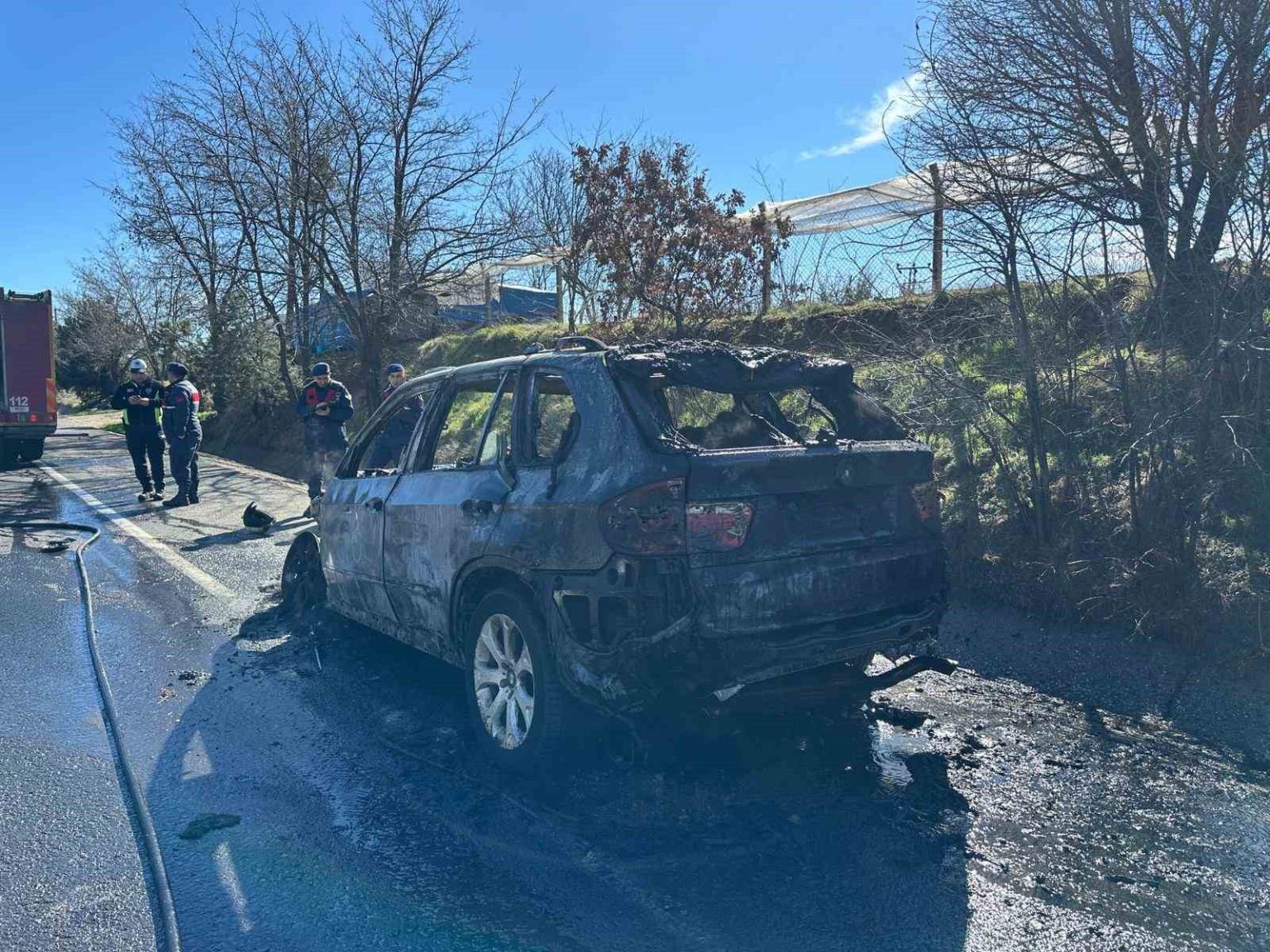 Olay, İzmir-Uşak karayolu Çınarcık köyü yakınlarında meydana geldi. Edinilen bilgilere göre, M.E.G. (54) idaresindeki 34 CPD 996 plakalı cip seyir halindeyken arızalandı. Sürücü aracı emniyet şeridine çektikten kısa süre sonra aracın ön tarafından alevler yükselmeye başladı.