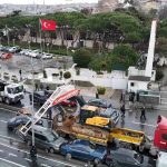 Üsküdar’da tırın üzerindeki ekskavatör tabelaya çarptı: 7 araç zarar gördü