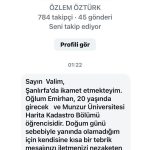 Söz konusu mesajda Öztürk, “Sayın valim, Şanlıurfa’da ikamet etmekteyim. Oğlum Emirhan, 20 yaşına girecek ve Munzur Üniversitesi Harita Kadastro Bölümü öğrencisidir. Doğum günü sebebiyle yanında olamadığım için kendisine kısa bir tebrik mesajınızı iletmenizi nezaketen rica ediyorum. İyi dileklerinizin Emirhan’a büyük moral olacağına inanıyorum. Saygılarımla” ifadelerini kullandı.