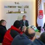 Bayburt Muhtarlar Derneği Başkanı Huzeyfe Budak ve beraberindeki muhtarlar, köylerin öncelikli ihtiyaçlarını Vali Mustafa Eldivan’a iletti.