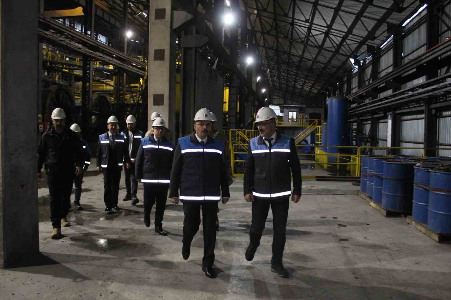 Vali Kızılkaya, iftar programı öncesinde Eti Bakır tesislerini ziyaret ederek yürütülen çalışmalar hakkında incelemelerde bulundu. Vali Kızılkaya, ziyaret kapsamında İşletme Müdürü Olcay Kotiloğlu’ndan tesis faaliyetleri ve üretim süreçlerine ilişkin detaylı bilgi aldı. Vali Kızılkaya, hem bölge hem ülke ekonomisine büyük katkılar sağlayan, ülkenin önemli bakır ihtiyacını karşılayan bir tesis olduğunu söyledi. Vali Kızılkaya, “Rabbim buradaki işçilerimizi, kardeşlerimizi, tüm çalışanları her türlü kazadan, beladan korusun. Rabbim hayırlı Ramazanlar nasip etsin inşallah. Bu vesileyle de burada çalışan kardeşlerimizle güzel bir Ramazan iftarı geçirmek için buradayız. Geçtiğimiz yıl yer altındaydık. Bu sene özellikle biraz sonra izleyeceğimiz yer üstündeki faaliyetlerle işçilerimizle beraber olacağız” dedi.