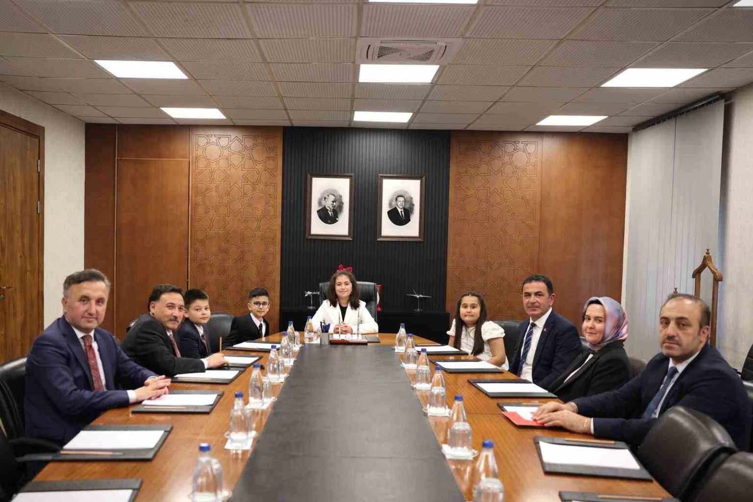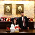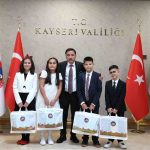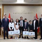 Vali Gökmen Çiçek, 23 Nisan Ulusal Egemenlik ve Çocuk Bayramı ile Türkiye Büyük Millet Meclisi’nin açılışının 106. yıl dönümü sebebiyle makamında İl Milli Eğitim Müdürü Coşkun Esen ve beraberinde Talas ilçesi TOKİ Şehit Levent Çetinkaya İlkokulu öğretmen ve öğrencilerini makamında kabul etti. Valilik koltuğuna oturan Zeynep Gedikbaş, “Sayın Valim, öncelikle bizleri makamınızda kabul ettiğiniz için şahsım ve arkadaşlarım adına çok teşekkür ediyorum. Bugün burada bulunmak, ilimizin en üst yöneticisiyle tanışmak bizler için büyük bir onur ve heyecan kaynağı. Bizler Cumhuriyetimizin emanetçisi olan öğrenciler olarak, vatanına ve milletine bağlı bireyler olarak yetişmek için çalışıyoruz. Şehrimizde göreve başladığınız günden bu yana himayenizde yürütülen çalışmaları büyük bir heyecanla takip ediyoruz. Kadın kooperatiflerinden Soğanlı Vadisi’nin turizme kazandırılmasına, gençlere yeni imkânlar sunan ERVA spor kulüplerine kadar her bir adım bizleri heyecanlandırıyor” dedi.