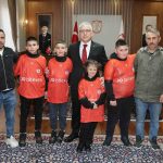 Kültür ve Turizm Bakanlığı’nın davetlisi olarak bugün İstanbul’a gidecek olan Adem Soylu ve çocukları tebrik eden Vali Şimşek, kendilerini başarılarından dolayı kutladı. Vali Şimşek, günün anısına çocuklara Sivasspor forması hediye ederek, hatıra fotoğrafı çektirdi.