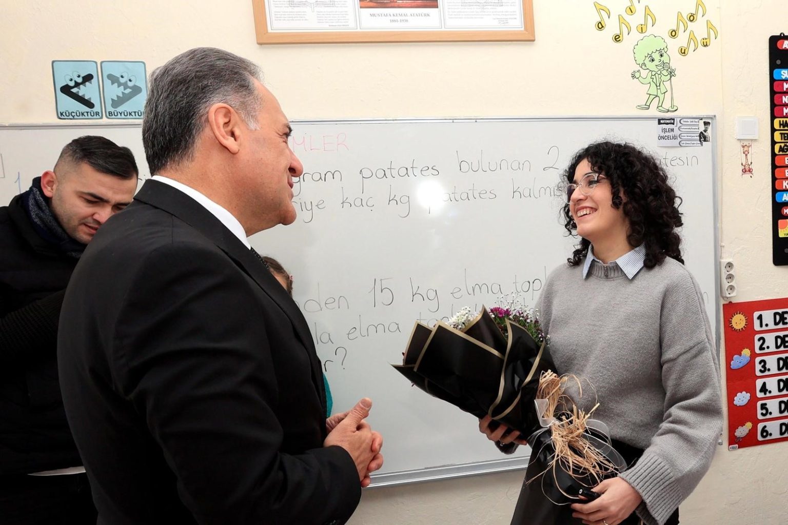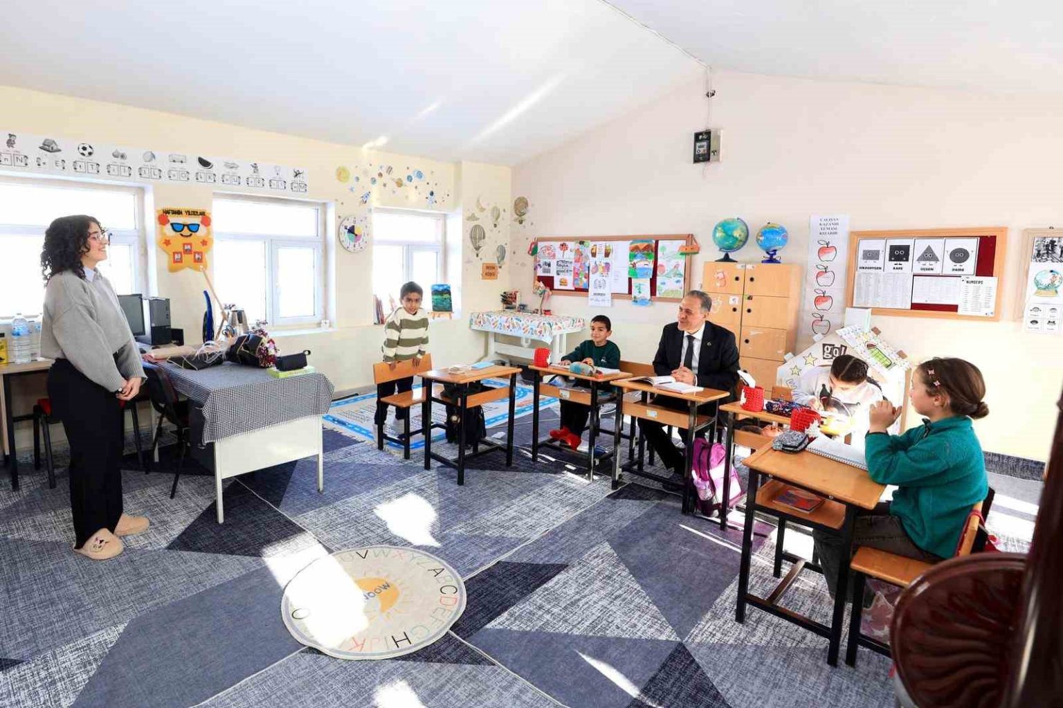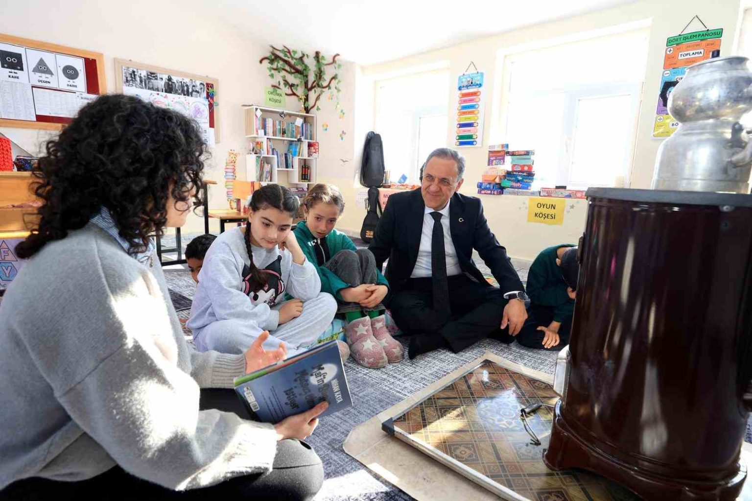 Bingöl Valisi Dr. Ahmet Hamdi Usta, sobanın başında köy okulunun sıcaklığını paylaştı, tek öğretmenli okulda 4 öğrenciye verilen özverili eğitime yakından tanıklık etti.