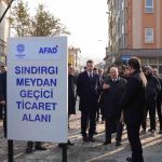 Vali Ustaoğlu daha sonra Sındırgı Meydanı’na geçerek, AFAD koordinasyonunda Balıkesir Valiliği iş birliğiyle kurulan Sındırgı Meydan Geçici Ticaret Alanı’nı ziyaret etti. Burada esnafla bir araya gelen Ustaoğlu, talep ve önerileri dinleyerek geçici ticaret alanındaki çalışmaların son durumunu yerinde gözlemledi.