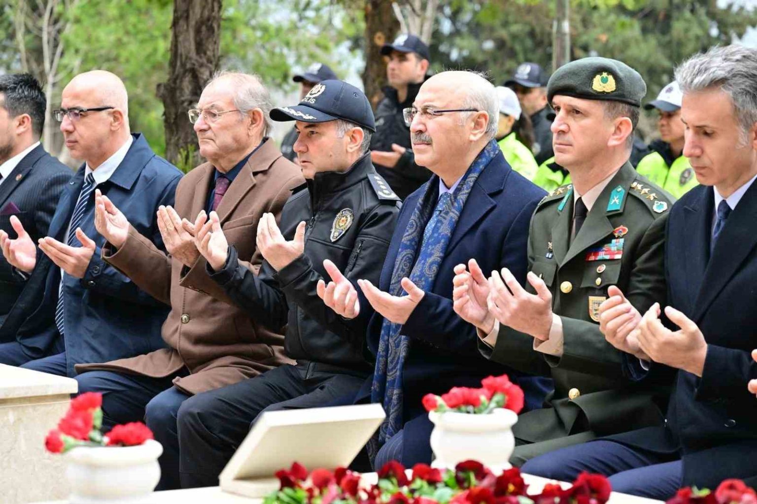 Denizli Valisi Yavuz Selim Köşger, arefe günü programı kapsamında Asri Mezarlık Şehitliklerini ziyaret etti. Ziyarette, şehitlerin kabirleri başında Kur’an-ı Kerim tilaveti okunurken İl Müftüsü Abdullah Pamuklu tarafından dua edildi. Vali Köşger, programın ardından şehit kabirlerine karanfil bıraktı.