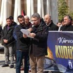 Van’da Ramazan ayının son Cuma günü münasebetiyle düzenlenen “Dünya Kudüs Günü” kapsamında Van Filistin’e Destek Platformu tarafından basın açıklaması yapıldı.