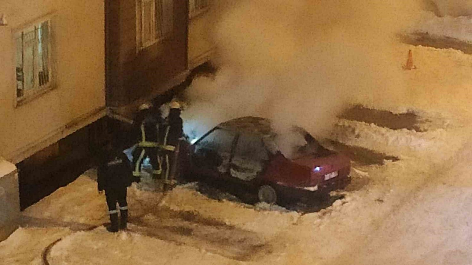Van’ın İpekyolu ilçesinde park halinde olan otomobil alev alev yandı.