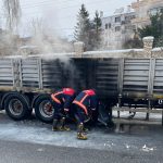 Van’ın Edremit ilçesinde seyir halindeki tırın yanan lastikleri itfaiye ekipleri tarafından söndürüldü.
