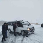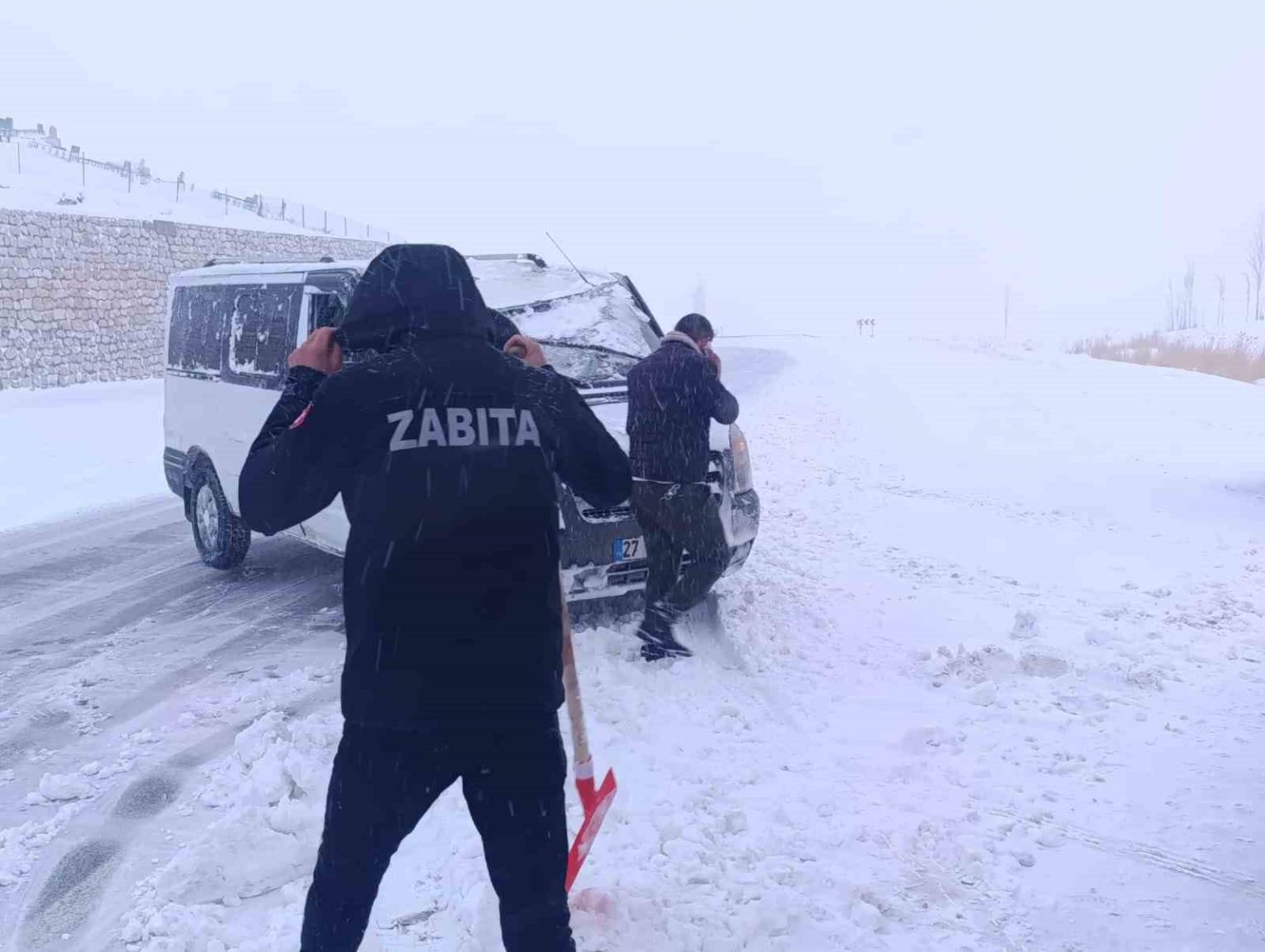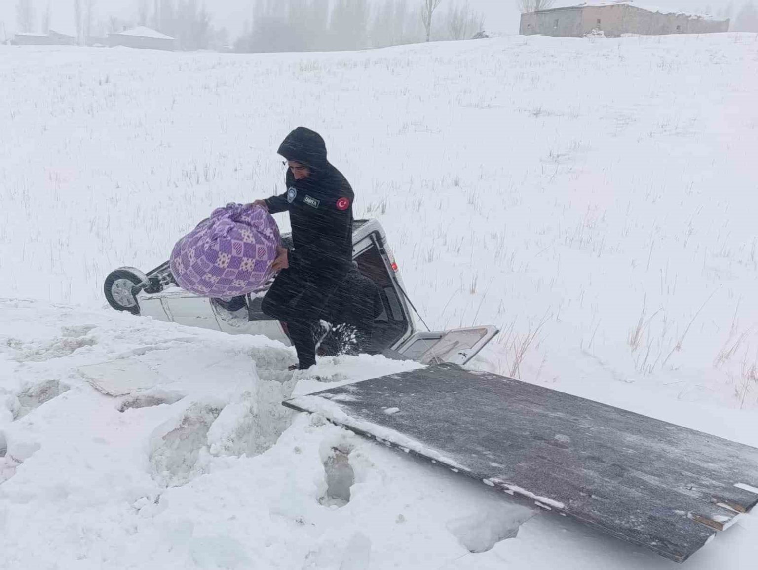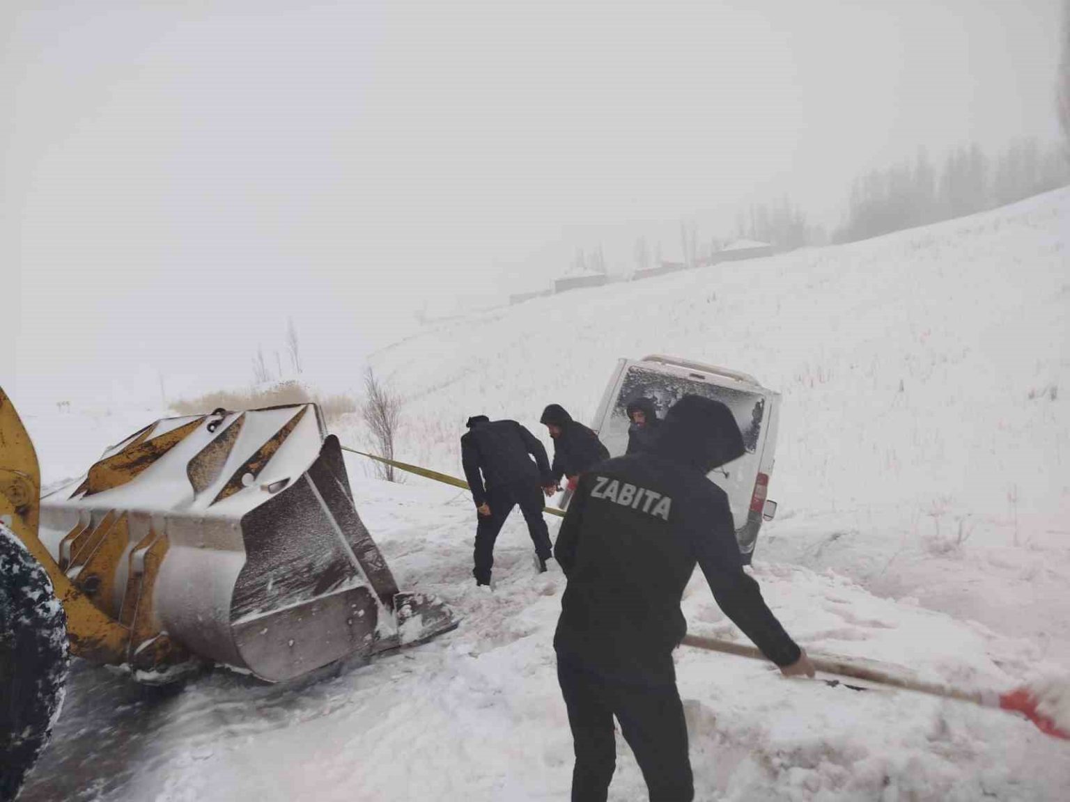 Van’ın Başkale ilçesinde kontrolden çıkan minibüs, yol kenarındaki kar birikintisine saplandı.