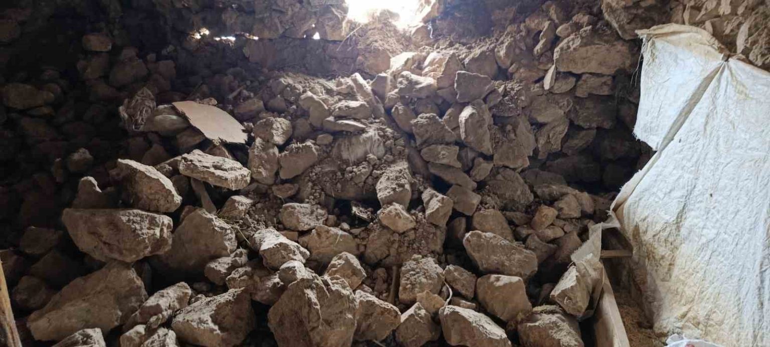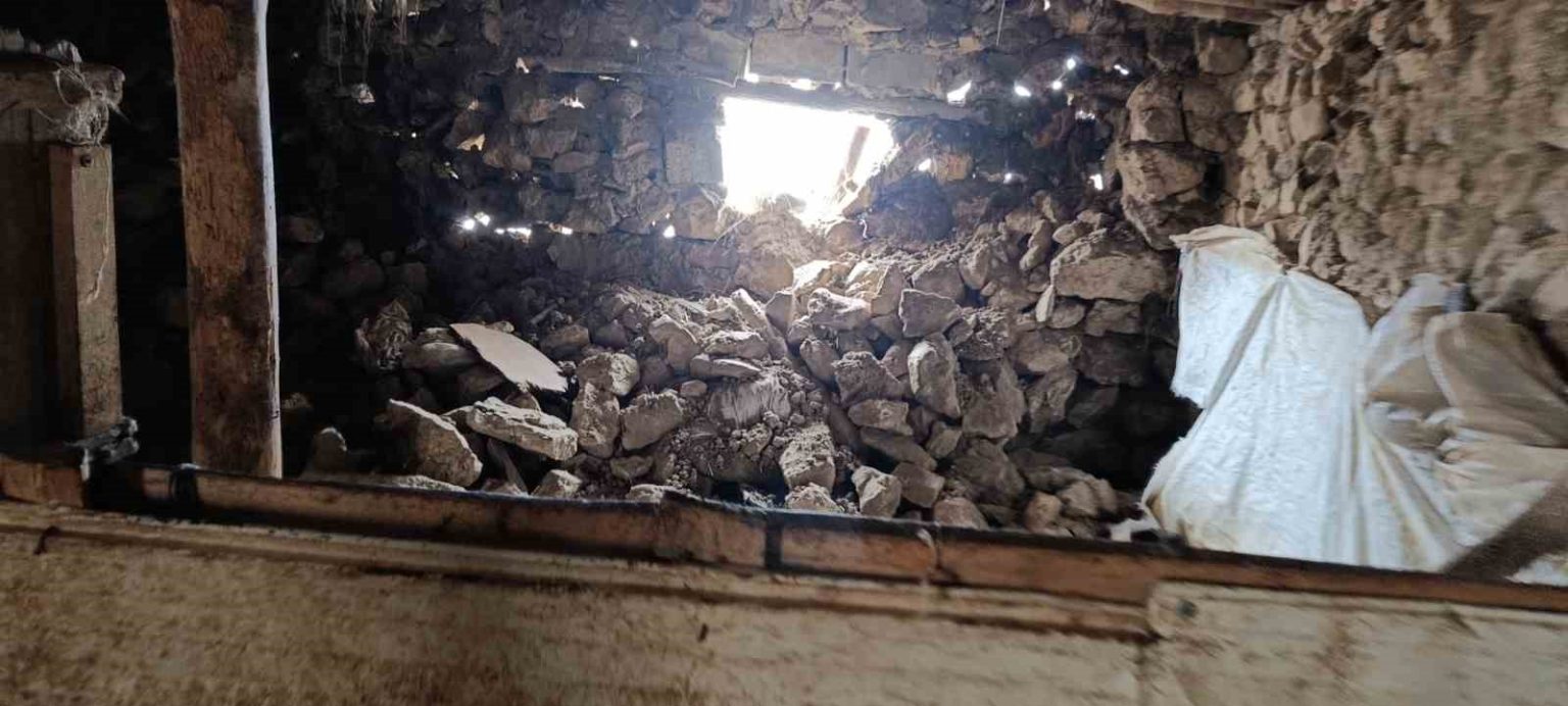 Van’ın Tuşba ilçesinde 5.2 büyüklüğündeki depremde bir ahırın duvarı çöktü.