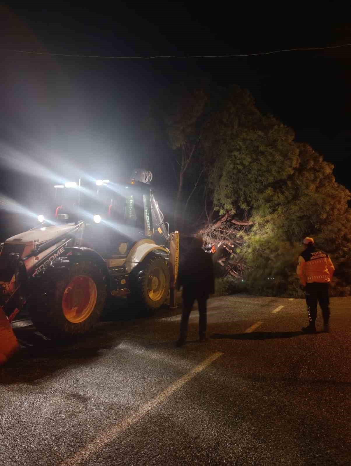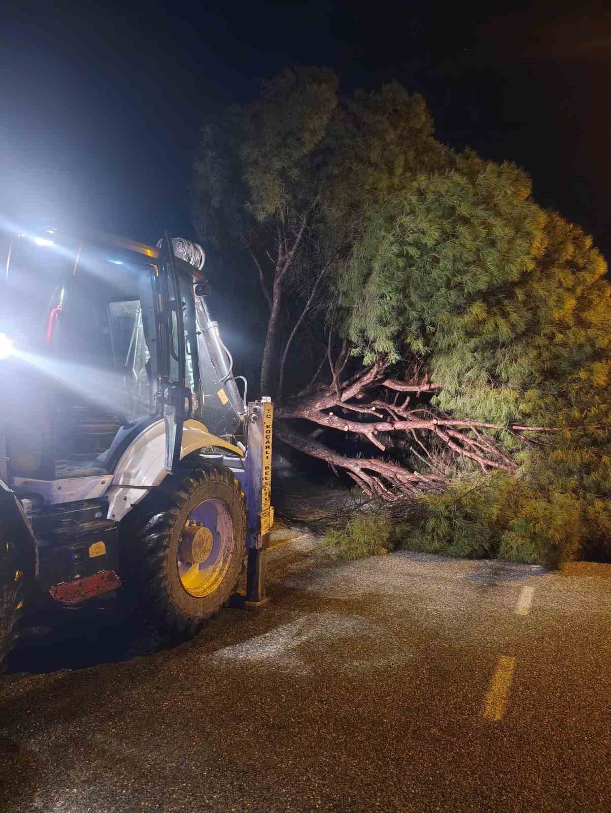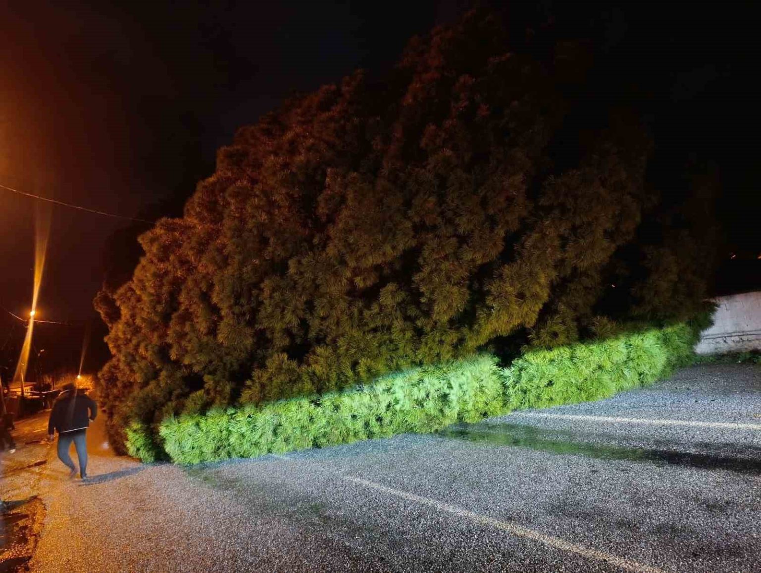 Aydın’ın Koçarlı ilçesinde etkili olan yağış sonrası çam ağacı yola devrilirken, şans eseri yaralananın olmadığı olayın ardından çam ağacı Koçarlı Belediyesi ekipleri tarafından kaldırıldı.