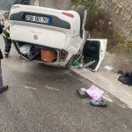 Yağış sonrası kayganlaşan yolda savrulan araç takla attı