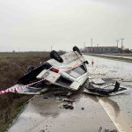 Kaza, Denizli’nin Çivril ilçesi Denizli-Uşak karayolunda meydana geldi. Edinilen bilgilere göre, sürücü R.E. yönetimindeki 20 AET 151 plakalı transit araç, yağış sonrası kayganlaşan yolda kontrolden çıkarak taklalar attı. Kazada sürücü R.E. ile araçta yolcu olarak bulunan S.Ö. yaralandı. Çevredeki vatandaşların 112 Acil Çağrı Merkezi’ne ihbarı üzerine olay yerine polis ve sağlık ekipleri sevk edildi. Yaralılar, sağlık ekiplerinin ilk müdahalesinin ardından Çivril Devlet Hastanesi’ne kaldırıldı. Yaralıların sağlık durumlarının iyi olduğu öğrenilirken, kaza nedeniyle yol bir süreliğine tek şeritten trafiğe açıldı.