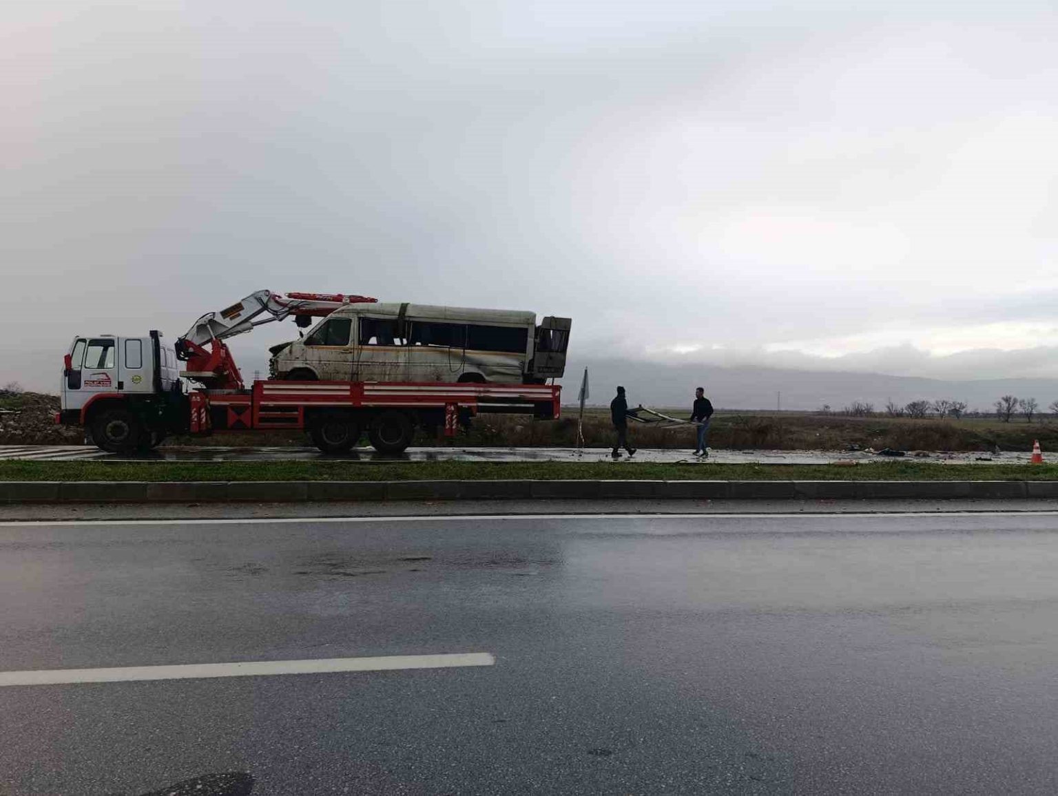 Yağış sonrası kayganlaşan yolda taklalar atan transit hurdaya döndü: 2 yaralı
