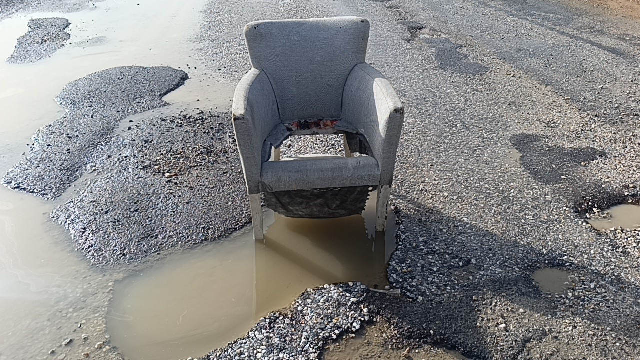 Antalya’nın Manavgat ilçesinde şiddetli yağışlar sonrası yolda oluşan çukurlar vatandaşlarca üzerine koltuk konularak kapatılmaya çalışıldı.