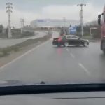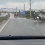 Kocaeli’nin Çayırova ilçesinde yağışlı havada makas atarak ilerleyen otomobil kontrolden çıkarak takla attı. O anlar saniye saniye cep telefonu kamerasına da yansıdı.
