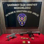 Gaziantep Emniyet Müdürlüğü Şahinbey İlçe Emniyet Müdürlüğü ekipleri ve Cumhuriyet Başsavcılığı koordinesinde aranan şahısların yakalanmasına yönelik çalışma yapıldı. Ekiplerin, çalışmalar sonucunda yaptığı operasyonla yağma ve hırsızlık suçundan 17 yıl 4 ay kesinleşmiş hapis cezasıyla aranan şahıs, saklandığı adreste yakalandı. Şahsın yapılan aramalarda 1 adet otomatik tabanca, 1 adet ruhsatsız tüfek, 109 adet fişek ve bir miktar uyuşturucu madde ele geçirildi.