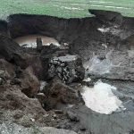 Yağmur sonrası yolda 4 metre derinliğinde çukur oluştu