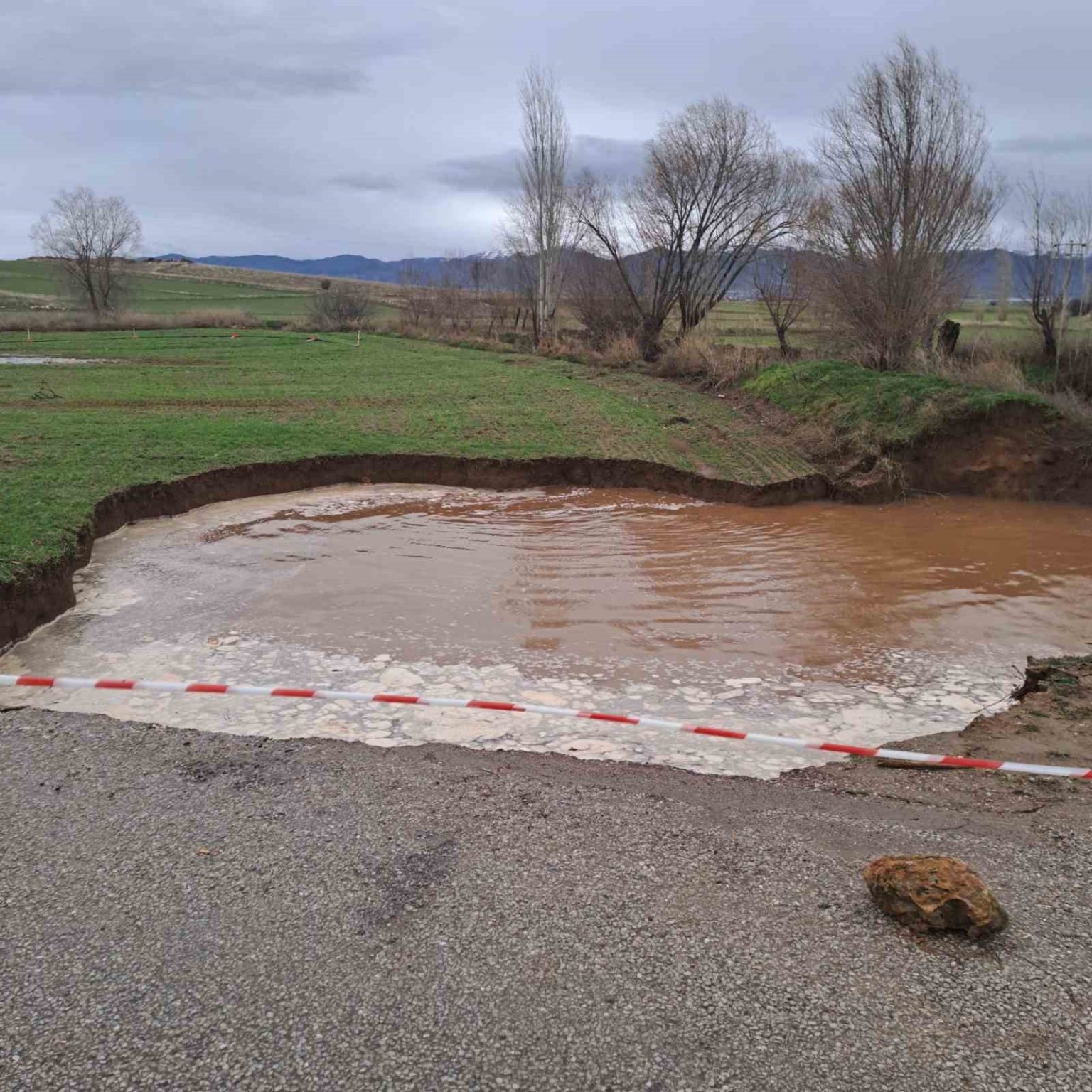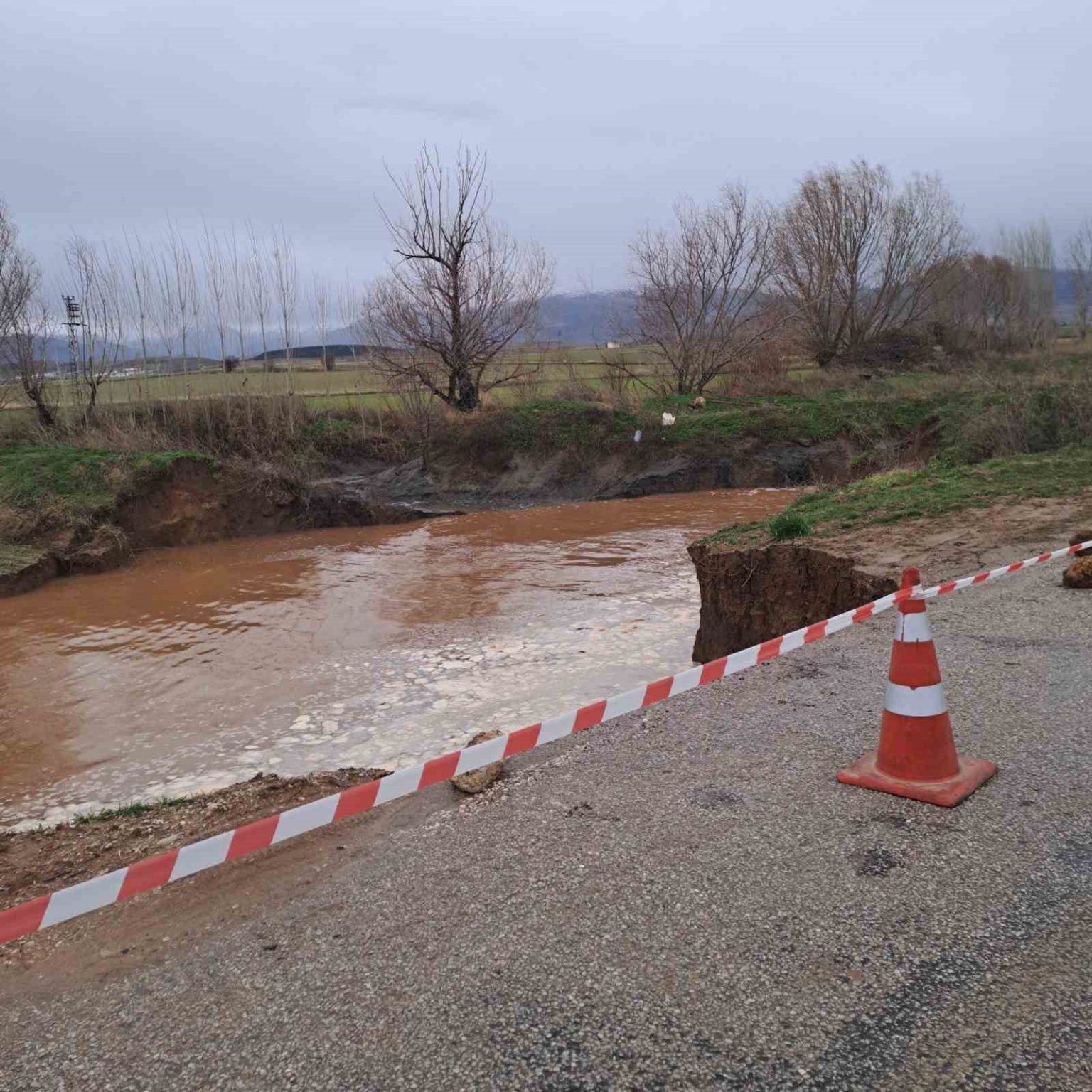 Afyonkarahisar’ın Sandıklı ilçesinde yaşanan aşırı yağışlar sonrası köyü birbirine bağlayan yolda çökme meydana geldi, yol güvenlik gerekçesiyle ulaşıma kapatıldı.