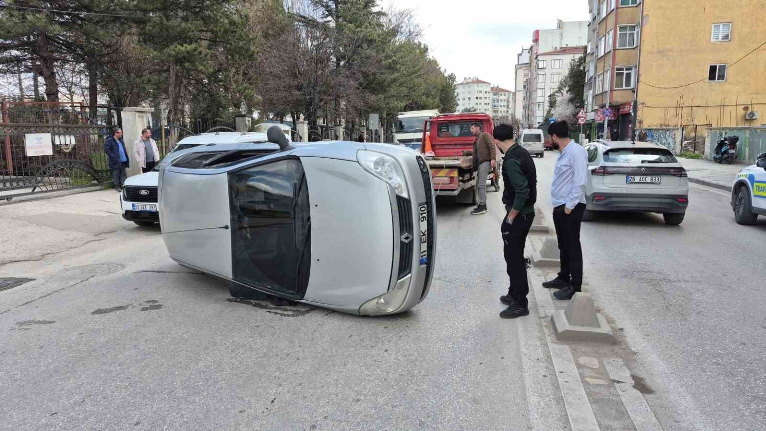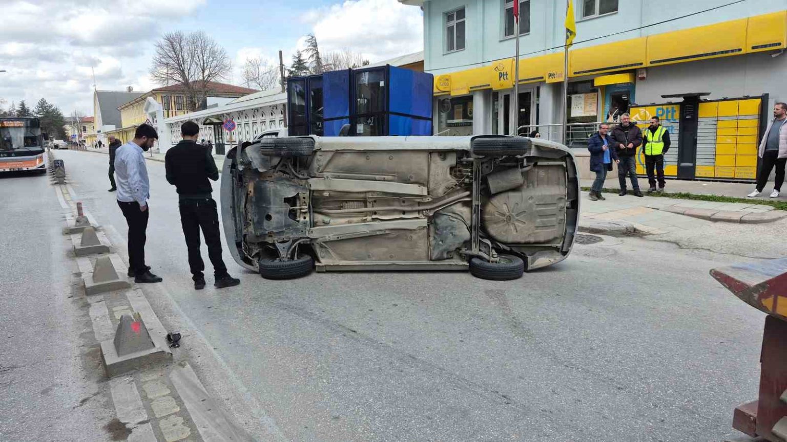 Kaza, saat 11.00 sıralarında Hoşnudiye Mahallesi İstasyon Caddesi’nde meydana geldi. Edinilen bilgilere göre; Ö.P. isimli erkek şahsın idaresindeki 11 EK 910 plakalı otomobil, sürücüsünün direksiyon hakimiyetini kaybetmesi sonucu yan yattı. Çevredeki vatandaşlar araç içerisindeki sürücünün yardımına koşarken, durum 112 Acil Çağrı Merkezi’ne bildirildi. İhbar üzerine olay yerine polis ekipleri sevk edildi. Otomobilin içerisinden çıkarılan sürücü, kazayı yara almadan atlattı.