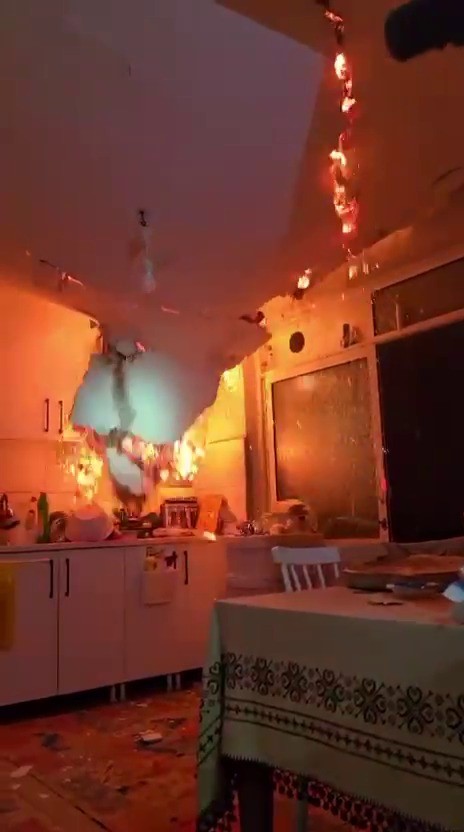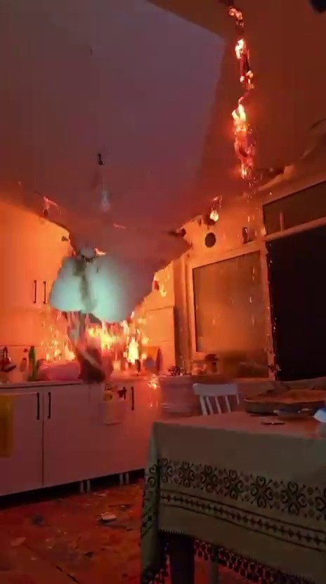 Yangında tavan çöktü, itfaiye ekipleri ölümden döndü… O anlar kameraya yansıdı
