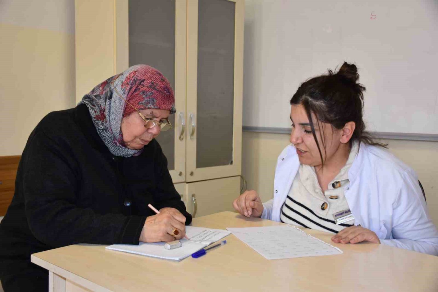 Kurs eğitmeni Tülay Balaban ise “Kursumuzda kadınlarımıza veya daha önce okula gitmemiş, daha sonra okuma-yazma öğrenmek isteyen kadınlarımıza okuma-yazma öğretiyoruz. Fatma teyze de 2-3 haftadır buraya geliyor. Biraz harfleri öğrenmeye başladı. Çok şükür azimli bir teyzemiz ve hatta ilk kursa geldiğinde Fatma teyzeyi görünce ben çok sevindim Bu yaşta kadınlarımızın okuma-yazmayı öğrenmeye çalışması bizim için çok güzel ve gurur vericidir. Özellikle yaşları büyük olan teyzelerimize özen gösteriyoruz. Biraz daha öğrenmeleri zor ama çok azimliler. Fatma teyze de çok güzel öğreniyor. Yavaş yavaş da öğrenecek inşallah. Okuma-yazmayı çok güzel öğreniyor. İlk 5-6 harfimizi öğrendi, öğrenmeye devam ediyoruz. Bize bu imkanı sağlayan Belediye Başkanımız Mehmet Tahmazoğlu’na teşekkür ediyoruz” diye konuştu.