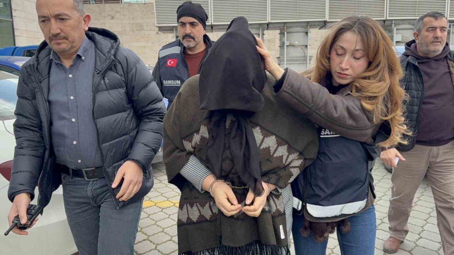 Samsun’da yasak ilişki yaşadığı sevgilisini boğazını keserek öldürdükten sonra polise teslim olan kadın ile oğlu ve kocası adliyeye sevk edildi.