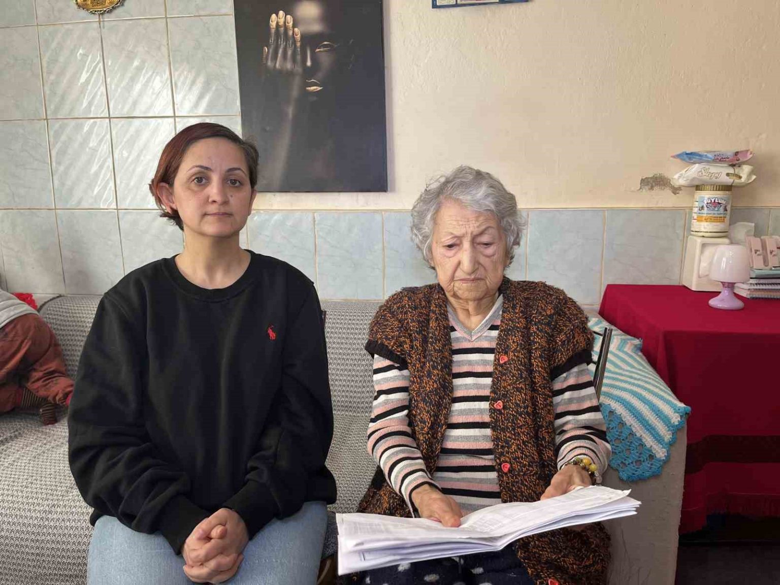 Yaşadıklarını anlatan Semra Şenkaya, kentsel dönüşüm sonrası dairesine taşınmadan önce torununun eve tanımadığı kişileri yerleştirdiğini iddia etti. Şenkaya, “Eve geldiğimde yabancı kişilerin kaldığını gördüm. Tepki gösterdiğimde üzerime yürüdüler. ’Burası benim mülküm, defol git’ diyerek beni evimden kovmaya çalıştılar. Mutfağa gittiğimde torunum beni darp etti, buzdolabına vurdu ve bıçak çekti. Beni yukarıdaki kiracı kurtardı. Hatta çayıma çamaşır suyu koyarak beni zehirlemeye kalkıştılar” dedi.