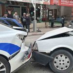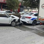 Yayaya yol veren polis aracına Tofaş otomobil arkadan çarptı