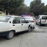 Burdur’da yaya geçidinde yayaya yol vermek için yavaşlayan trafik polisinin aracına, Tofaş otomobil arkadan çarptı.