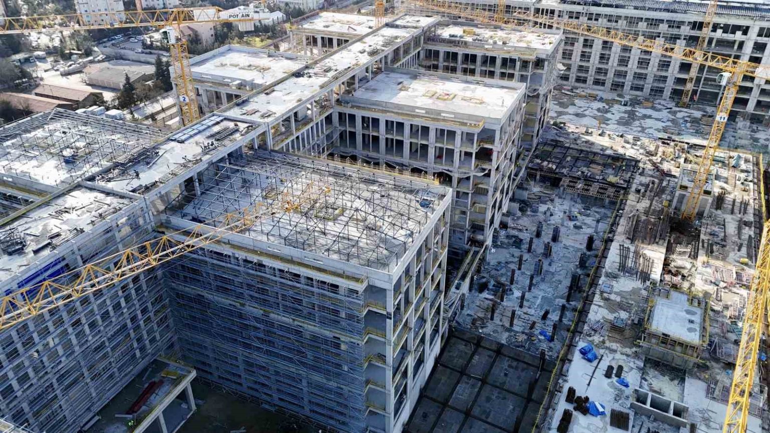 Ankara’da adalet hizmetlerini tek merkezde toplayacak olan yeni Ankara Adalet Sarayı’nda ayrıca 4 bin 180 araç kapasiteli otopark, 610 kişilik konferans salonu ve sığınak alanları da yer alacak. Yeni Ankara Adalet Sarayı’nın inşaat alanı ve son durumu dron ile görüntülendi. Dron görüntülerinde, projenin ulaştığı aşama ve büyüklüğü net bir şekilde ortaya kondu. Yeni adliye binasının hizmete girmesiyle birlikte Ankara’da adalet hizmetlerinin daha hızlı, modern ve etkin şekilde yürütülmesi amaçlanıyor. Adalet altyapısının gücüne güç katacak projenin yapımına 7 gün 24 saat devam edilirken, 1 Eylül 2027 tarihinde hizmete girmesi bekleniyor.