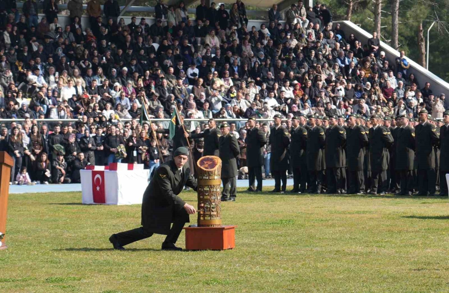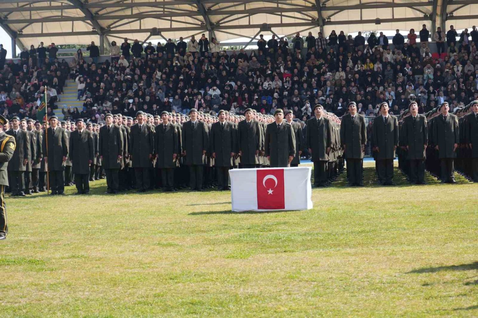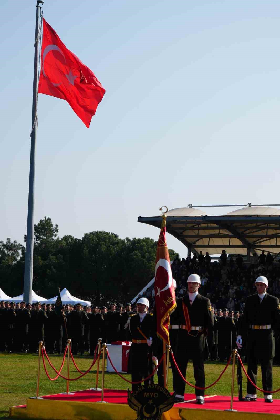 Eğitimde dönem birincisi olan Nihat Doğan, öğrenciler adına bir konuşma yaptı. Doğan, konuşmasında, “Ebedi Başkomutanımız Gazi Mustafa Kemal Atatürk’ün rehberliğinde bizler ülkemize yönelecek her türlü tehdidin karşısındaki sarsılmaz iradeyi milli ve manevi değerlerimize sahip çıkacağız. Daima Türk milletinin ve seçilmiş millet iradesinin emrinde olacağız. Metehan’dan Alparslan’a, Fatih Sultan Mehmet’ten Gazi Mustafa Kemal Atatürk’e uzanan ve 2 bin 200 yıllık Türk devlet geleneğine dayanan ve bu toprakları toprak yapan şehadet kültürünü, Milli Mücadele’yi kazanan ruhu koruyup gelecek kuşaklara aktaracağız” dedi.