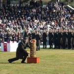 Törende öğrencilere ve ailelerine hitap eden Milli Savunma Üniversitesi Rektörü Prof. Dr. Erhan Afyoncu, “Türkiye çağın ötesine geçip yaptığı insansız hava araçlarıyla dünya harp tarihinin konseptini, gidişini değiştirdi. Fatih’in toplarının bir çağı kapatması gibi BAYKAR başta olmak üzere bütün savunma sanayi şirketlerimizin; ROKETSAN’ın, ASELSAN’ın, TUSAŞ’ın yaptığı silahlar robot savaşları çağını Türk Ordusuna büyük bir güvence sağladı. Bu sayede yeni bir savaş konseptini inşa ettik ve SİHA’larla birçok yerde konvansiyonel aletlerde Türkler çok etkili oldular. Fakat bütün silahları kullanacak unsur sonuçta insan. İşte 2016’da büyük bir ihanetten sonra kurulan Milli Savunma Üniversitesi Türk ordusunun insan gücünü yetiştiriyor. Bugüne kadar 61 bin 717 subay, astsubay ve kurmay subayı mezun ederek kara, deniz ve hava kuvvetlerimize verdik. O sayede bugün ordumuz Suriye’den Irak’a, Libya’dan Karabağ’a kadar birçok yerde dost ve kardeş ülkelerimizle birlikte Türkiye’nin hak ve menfaatlerini savunuyor. Kara Astsubay Okulumuz bizim en fedakar okullarımızdan birisidir. Bugüne kadar 24 bin 172 astsubayımızı mezun ettik. Bugün ise 2 bin 712 Türk ve Gineli astsubayımızı mezun ediyoruz. Bu sene toplam mezun sayımız yaz mezunlarıyla birlikte 4 bini bulacak. Bu sayı çok büyük bir sayı. Çok büyük fedakarlıklarla yetiştirdiğimiz öğrencilerimiz ordumuzu, kara kuvvetlerimizi daha da güçlendirecek. Bizim bir yılda mezun ettiğimiz kara astsubayı Yunanistan 17 yılda mezun ediyor. Yani Yunanistan’ın 17 mislini biz bir yılda mezun edebiliyoruz. Bunun için de Kara Astsubay Okulumuzun komutanına, okul müdürümüze ve bütün hocalarımıza teşekkür ediyorum. İşte bu yeni dönemde Milli Savunma Üniversitesi’nin yetiştirip kuvvetlerine verdiği subay ve astsubaylarımız savunma sanayimizin silahlarını kullanarak ülkemizi koruyacak. Biz savaş istemiyoruz. Ancak Türkiye’nin hak ve menfaatlerini Türk Silahlı Kuvvetleri sivil iradenin emrinde her yerde savunacaktır. Bunun bu şekilde bilinmesi gerekiyor. Ben Milli Savunma Üniversitesi’nin bugüne kadar gelmesinde desteği olan başta Cumhurbaşkanımız olmak üzere Milli Savunma Bakanlığımıza, Kara Kuvvetlerimize ve bütün devlet yetkililerine teşekkür ediyorum” dedi.