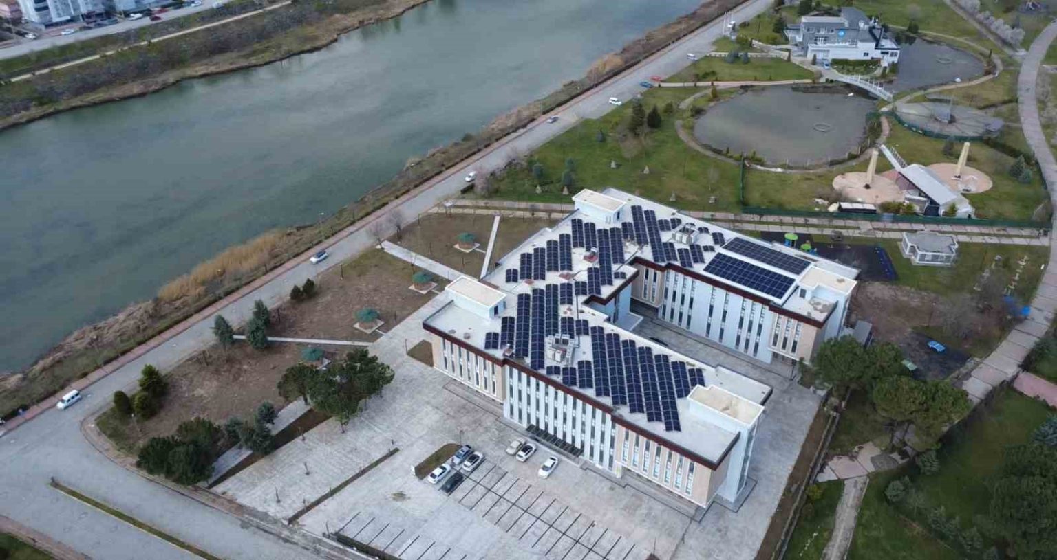 Yeni hükümet konağı çevreci özellikleriyle de dikkat çekiyor. Binanın çatısına yerleştirilen güneş panelleri sayesinde enerji ihtiyacının bir kısmı kendi üretimiyle karşılanacak.