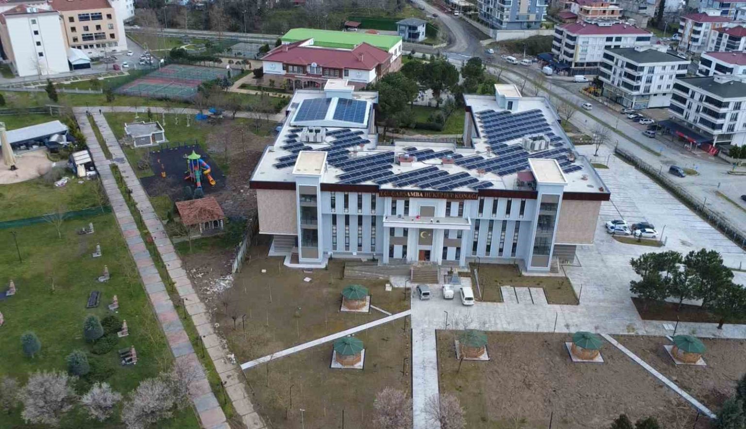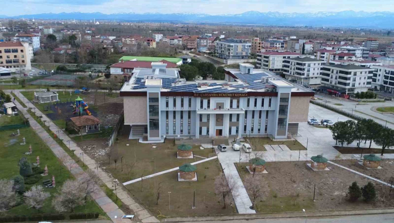 Samsun’un Çarşamba ilçesinde yapımı tamamlanan yeni Hükümet Konağı’nda kaymakamlık hizmetleri verilmeye başlandı. Enerjisinin bir kısmını çatısındaki güneş panellerinden üretecek olan bina, birçok kamu kurumunu da tek çatı altında toplayacak.
