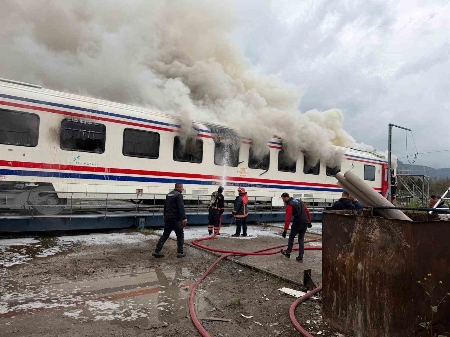 Sakarya’nın Pamukova ilçesinde faaliyet gösteren raylı sistemler fabrikasında yeni üretilen bir vagonda yangın çıktı. Yangın, itfaiye ekiplerinin müdahalesiyle kontrol altına alınarak söndürüldü.