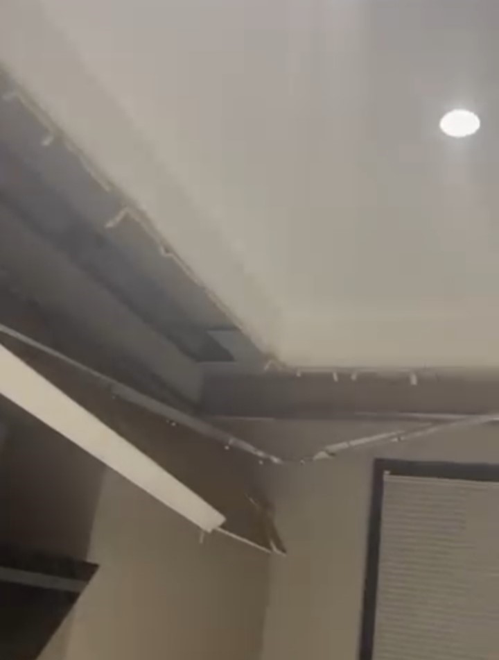 Yeni yapılan binada mutfağın tavanı çöktü… O anlar kamerada