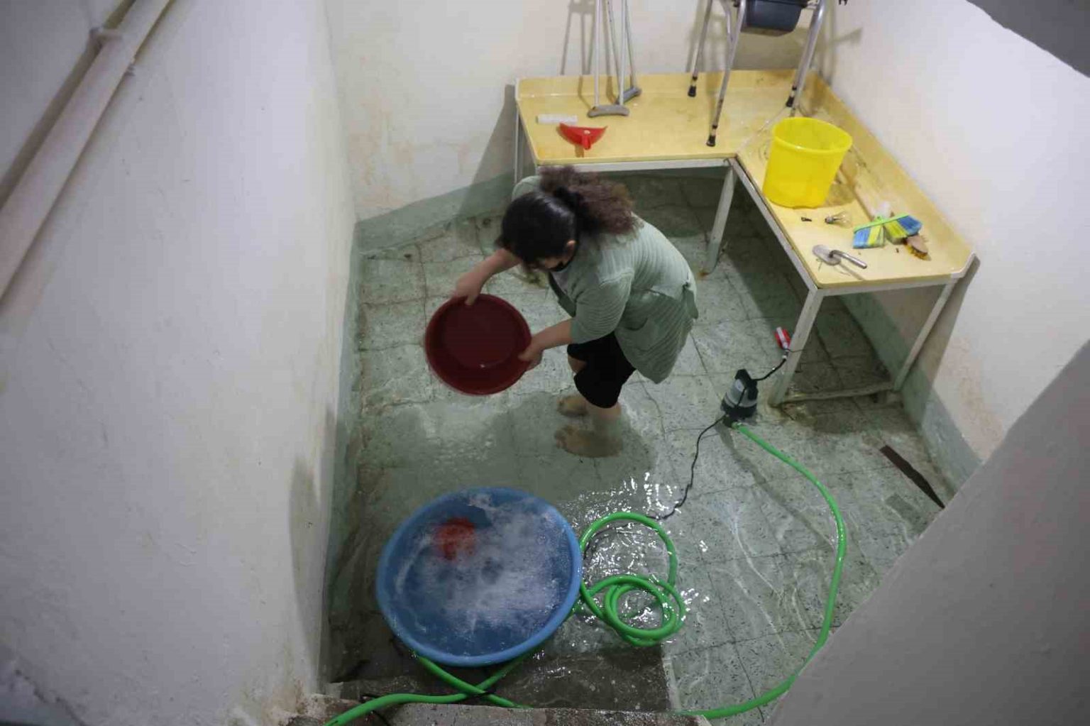 “Eğer biriken suyu çekmezsek evin içerisi su doluyor”