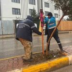 Son dönemde etkili olan şiddetli yağışlar ve rüzgarlar nedeniyle formu bozulan genç fidanlar, ekipler tarafından tek tek incelenerek koruyucu çıta montajlarıyla destekleniyor. Eş zamanlı olarak yürütülen budama çalışmalarıyla, ağaçların hem mevsim şartlarına karşı direnci artırılıyor hem de sağlıklı gelişimleri için gerekli fizyolojik alan oluşturuluyor.